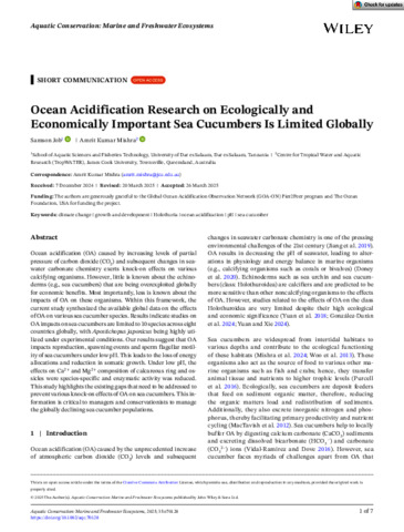 Job, Samson, and Mishra, Amrit Kumar (2025) Ocean Acidification Research on Ecologically and Economically Important Sea Cucumbers Is Limited Globally. Aquatic Conservation: marine and freshwater ecosystems, 35 (4). e70128. pp. 1-7.