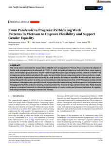 Akbari, Mohammadreza, Alonso, Abel Duarte, Vu, Oanh Thi Kim, Hopkins, John, Bardoel, Anne, and Kok, Seng Kiat (2025) From Pandemic to Progress: Rethinking Work Patterns in Vietnam to Improve Flexibility and Support Gender Equality. Asia Pacific Journal of Human Resources, 63 (2). e70003.