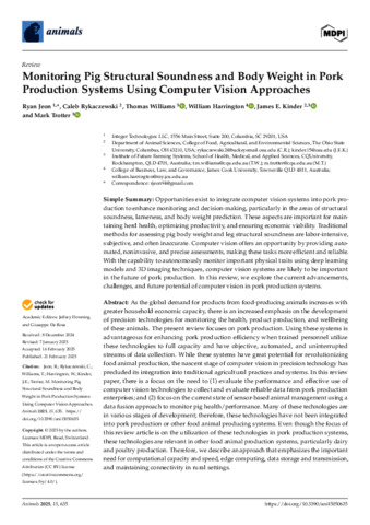 Jeon, Ryan, Rykaczewski, Caleb, Williams, Thomas, Harrington, William, Kinder, James E., and Trotter, Mark (2025) Monitoring Pig Structural Soundness and Body Weight in Pork Production Systems Using Computer Vision Approaches. Animals, 15 (5). 635.