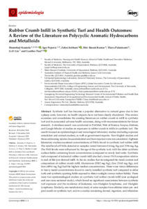 Karatela, Shamshad, Popovic, Igor, Sobhani, Zahra, Kumar, Shiv Basant, Palanisami, Thava, Lin, Li Zi, and Paul, Gunther (2025) Rubber Crumb Infill in Synthetic Turf and Health Outcomes: A Review of the Literature on Polycyclic Aromatic Hydrocarbons and Metalloids. Epidemiologia, 6 (1). 4.