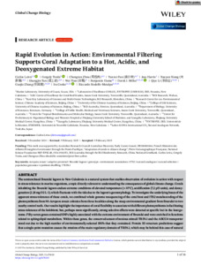 Leiva, Carlos, Torda, Gergely, Zhou, Chengran, Pan, Yunrui, Harris, Jessica, Xiang, Xueyan, Tan, Shangjin, Tian, Wei, Hume, Benjamin, Miller, David J., Li, Qiye, Zhang, Guojie, Cooke, Ira, and Rodolfo-Metalpa, Riccardo (2025) Rapid Evolution in Action: Environmental Filtering Supports Coral Adaptation to a Hot, Acidic, and Deoxygenated Extreme Habitat. Global Change Biology, 31 (3). e70103.