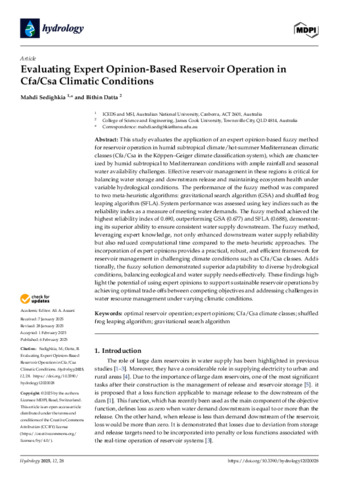 Sedighkia, Mahdi, and Datta, Bithin (2025) Evaluating Expert Opinion-Based Reservoir Operation in Cfa/Csa Climatic Conditions. Hydrology, 12 (2). 28.