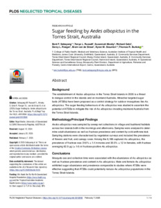 Sebayang, Boni F., Russell, Tanya L., Mosby, Susannah, Gela, Richard, Roeger, Darcy L., van de Straat, Bram, Staunton, Kyran M., and Burkot, Thomas R. (2025) Sugar feeding by Aedes albopictus in the Torres Strait, Australia. PLoS Neglected Tropical Diseases, 19 (2). e0012856.
