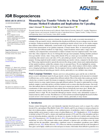Rexroade, Adam T., Wallin, Marcus B., and Duvert, Clément (2025) Measuring Gas Transfer Velocity in a Steep Tropical Stream: Method Evaluation and Implications for Upscaling. Journal of Geophysical Research: Biogeosciences, 130 (2). e2024JG008420.