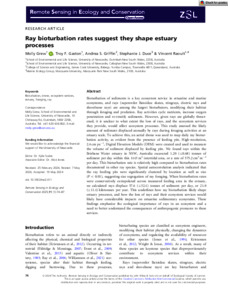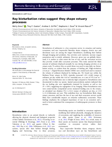 Grew, Molly, Gaston, Troy F., Griffin, Andrea S., Duce, Stephanie J., and Raoult, Vincent (2025) Ray bioturbation rates suggest they shape estuary processes. Remote Sensing in Ecology and Conservation, 11 (1). pp. 74-87.