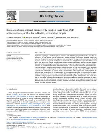 Mostafaei, Kamran, Yousefi, Mahyar, Kreuzer, Oliver, and Kianpour, Mohammad Nabi (2025) Simulation-based mineral prospectivity modeling and Gray Wolf optimization algorithm for delimiting exploration targets. Ore Geology Reviews, 177. 106458.