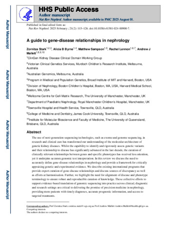 Stark, Zornitza, Byrne, Alicia B., Sampson, Matthew G., Lennon, Rachel, and Mallett, Andrew J. (2025) A guide to gene–disease relationships in nephrology. Nature Reviews Nephrology, 21 (2). 98. pp. 115-126.