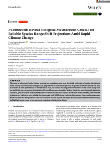 Van der Meersch, Victor, Armstrong, Edward, Mouillot, Florent, Duputié, Anne, Davi, Hendrik, Saltré, Frédérik, and Chuine, Isabelle (2025) Paleorecords Reveal Biological Mechanisms Crucial for Reliable Species Range Shift Projections Amid Rapid Climate Change. Ecology Letters, 28 (2). e70080.