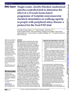 Single-centre, double-blinded, randomised placebo-controlled trial to determine the effect of a 12-week home-based programme of footplate neuromuscular electrical stimulation on walking capacity in people with peripheral artery disease: a protocol for the Foot-PAD trial