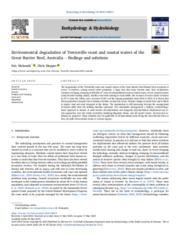 Wolanski, Eric, and Hopper, Chris (2025) Environmental degradation of Townsville coast and coastal waters of the Great Barrier Reef, Australia – findings and solutions. Ecohydrology and Hydrobiology, 25 (4). 100672.