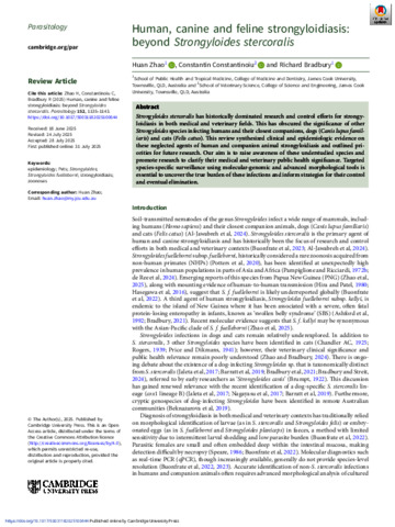 Zhao, Huan, Constantinoiu, Constantin, and Bradbury, Richard Steward (2025) Human, canine, and feline strongyloidiasis: beyond Strongyloides stercoralis. Parasitology, 152 (11). pp. 1135-1143.