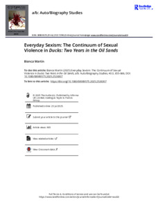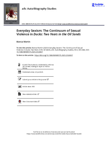 Martin, Bianca (2025) Everyday Sexism: The Continuum of Sexual Violence in Ducks: Two Years in the Oil Sands. Auto/Biography Studies, 40 (3). pp. 655-666.