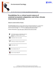 Lockie, Stewart, and Paxton, Gillian (2025) Possibilities for a critical social science of assisted ecosystem adaptation and other climate intervention practices. Environmental Sociology, 12 (1). pp. 1-9.