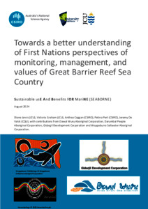 Jarvis, D., Graham, V., Coggan, A., Pert, P., and De Valck, J. (2024) Towards a better understanding of First Nations perspectives of monitoring, management, and values of Great Barrier Reef Sea Country. Report. CSIRO Publishing, Australia.
