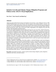 Inclusive Growth and Climate Change Mitigation Programs and Policies in the ASEAN: Fiscal Implications