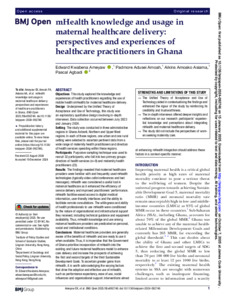 Ameyaw, Edward Kwabena, Amoah, Padmore Adusei, Asiama, Aikins Amoako, and Agbadi, Pascal (2025) m-Health knowledge and usage in maternal healthcare delivery: Perspectives and experiences of healthcare practitioners in Ghana. BMJ Open, 15 (1). e092746.