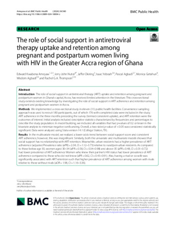 The role of social support in antiretroviral therapy uptake and retention among pregnant and postpartum women living with HIV in the Greater Accra region of Ghana
