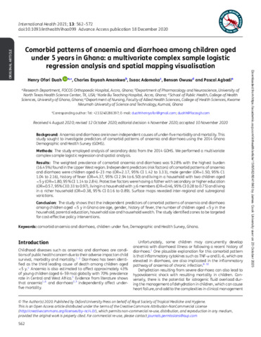 Duah, Henry Ofori, Amankwa, Charles Enyaah, Adomako, Isaac, Owusu, Benson, and Agbadi, Pascal (2021) Comorbid patterns of anaemia and diarrhoea among children aged under 5 years in Ghana: A multivariate complex sample logistic regression analysis and spatial mapping visualisation. International Health, 13 (6). pp. 562-572.