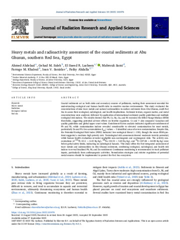 Abdelaal, Ahmed, Saleh, Gehad M., Lasheen, El Saeed R., Sami, Mabrouk, Khaleal, Farrage M., Sanislav, Ioan V., and Abdalla, Fathy (2025) Heavy metals and radioactivity assessment of the coastal sediments at Abu Ghusun, southern Red Sea, Egypt. Journal of Radiation Research and Applied Sciences, 18 (4). 101976.