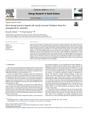 Welters, Riccardo, and Gerards, Ruud (2025) Does energy poverty impede job search success? Evidence from the unemployed in Australia. Energy Research & Social Science, 129. 104377.