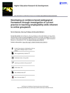 Paterson, Terrie, Prideaux, Murray, and Welters, Riccardo (2025) Developing an evidence-based pedagogical framework through investigation of current practice in teaching employability skills inherent to online groupwork. Higher Education Research & Development. (In Press)