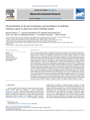 Ghafoor, Dawood, Hayakijkosol, Orachun, Prasetsincharoen, Noppadol, Ewels, Carla C.M., Noman, Muhammad, Chomchat, Poommate, and Kinobe, Robert (2025) Characterisation of the gut microbiome and surveillance of antibiotic resistance genes in green sea turtles (Chelonia mydas). Marine Environmental Research, 212. 107605.