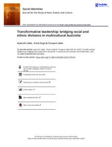 Udah, Hyacinth, Singh, Parlo, and Udah, Chinyere (2025) Transformative leadership: bridging racial and ethnic divisions in multicultural Australia. Social Identities Journal for the Study of Race, Nation and Culture. (In Press)