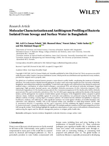 Polash, Md Arif-Uz-Zaman, Islam, Md Shamsul, Zahan, Nusrat, Sarker, Subir, and Haque, Md Hakimul (2025) Molecular Characterization and Antibiogram Profiling of Bacteria Isolated From Sewage and Surface Water in Bangladesh. Scientifica, 2025. 848058.