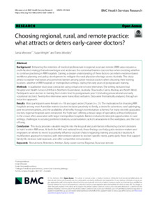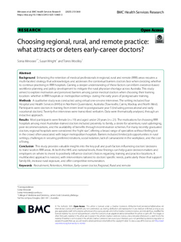 Minooee, Sonia, Wright, Susan, and Woolley, Torres (2025) Choosing regional, rural, and remote practice: what attracts or deters early-career doctors? BMC Health Services Research, 25. 1368.