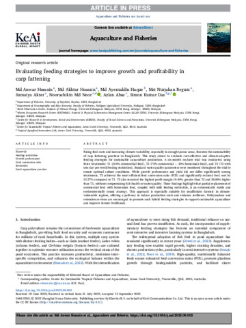 Hossain, Md Anwar, Hossain, Md Akhtar, Haque, Md Ayenuddin, Begum, Mst Nurjahan, Akter, Sumaiya, Noor, Noorashikin Md, Abas, Azlan, and Das, Simon Kumar (2025) Evaluating feeding strategies to improve growth and profitability in carp fattening. Aquaculture and Fisheries. (In Press)