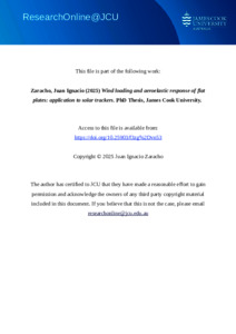 Zaracho, Juan Ignacio (2025) Wind loading and aeroelastic response of flat plates: application to solar trackers. PhD thesis, James Cook University.