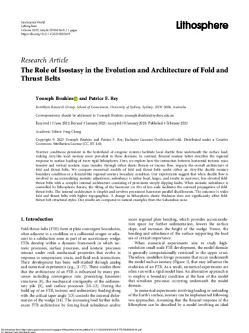 Ibrahim, Youseph, and Rey, Patrice F. (2023) The Role of Isostasy in the Evolution and Architecture of Fold and Thrust Belts. Lithosphere, 203.