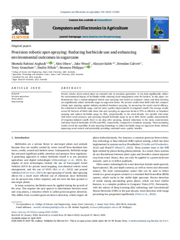 Rahimi Azghadi, Mostafa, Olsen, Alex, Wood, Jake, Saleh, Alzayat, Calvert, Brendan, Granshaw, Terry, Fillols, Emilie, and Philippa, Bronson (2025) Precision robotic spot-spraying: Reducing herbicide use and enhancing environmental outcomes in sugarcane. Computers and Electronics in Agriculture, 235. 110365.