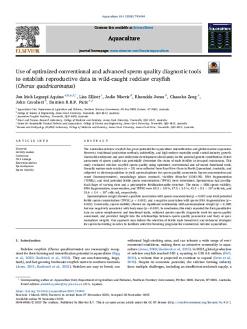 Aquino, Jon Irish Legaspi, Elliott, Lisa, Morris, Jodie, Jones, Rhondda, Zeng, Chaoshu, Cavalieri, John, and Paris, Damien B.B.P. (2026) Use of optimized conventional and advanced sperm quality diagnostic tools to establish reproductive data in wild-caught redclaw crayfish (Cherax quadricarinatus). Aquaculture, 614. 743494.