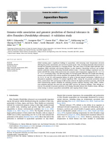 Genome-wide association and genomic prediction of thermal tolerance in olive flounders (Paralichthys olivaceus): A validation study