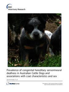 Sommerlad, Susan F., Morton, John M., Haile-Mariam, Mekonnen, Johnstone, Isobel, Seddon, Jennifer M., and O'Leary, Caroline A. (2012) Prevalence of congenital hereditary sensorineural deafness in Australian Cattle Dogs and associations with coat characteristics and sex. BMC Veterinary Research, 8. 202.