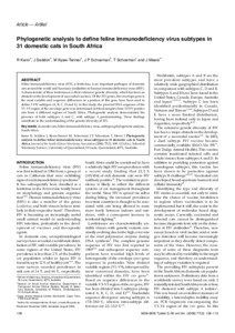 Phylogenetic analysis to define feline immunodeficiency virus subtypes in 31 domestic cats in South Africa