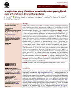 A longitudinal study of methane emissions by cattle grazing buffel grass or buffel grass–Desmanthus pastures