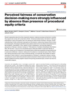 Perceived fairness of conservation decision-making more strongly influenced by absence than presence of procedural equity criteria