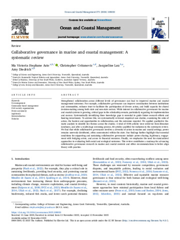 Asio, Ma Victoria Stephane, Cvitanovic, Christopher, Lau, Jacqueline, and Diedrich, Amy (2025) Collaborative governance in marine and coastal management: A systematic review. Ocean & Coastal Management, 272. 108020.