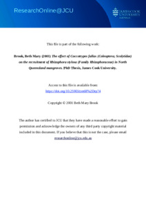 Brook, Beth Mary (2001) The effect of Coccotrypes fallax (Coleoptera; Scolytidae) on the recruitment of Rhizophora stylosa (Family Rhizophoraceae) in North Queensland mangroves. PhD thesis, James Cook University.