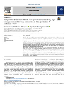 Chew, Yuan YI, Maharajan, Mari Kannan, Gopinath, Divya, and Rajiah, Kingston (2025) Comparative effectiveness of health literacy intervention on reducing sugar or sugar-sweetened beverage consumption in Asian populations: A systematic review. Public Health, 244. 105750.