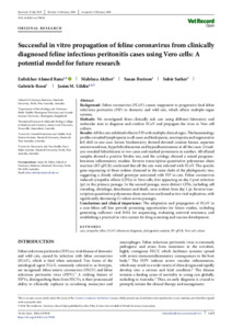 Rana, Eaftekhar Ahmed, Akther, Mahfuza, Beetson, Susan, Sarker, Subir, Rossi, Gabriele, and Uddin, Jasim M. (2026) Successful in vitro propagation of feline coronavirus from clinically diagnosed feline infectious peritonitis cases using Vero cells: A potential model for future research. Veterinary Record Open, 13. e70030.