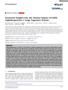 Nath, Babu Kanti, Swarbrick, Crystall M.D., Blades, Reuben, Ariawan, Daryl, Tietz, Ole, Alvisi, Gualtiero, Forwood, Jade K., and Sarker, Subir (2026) Structural Insights Into the Nuclear Import of Gallid Alphaherpesvirus 1 Large Tegument Protein. MicrobiologyOpen, 15. e70216.