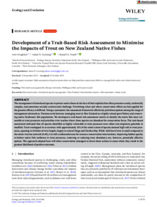 Coughlan, Ami, Canning, Adam D., and Death, Russell G. (2025) Development of a Trait-Based Risk Assessment to Minimise the Impacts of Trout on New Zealand Native Fishes. Ecology and Evolution, 15. e72480.