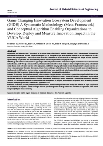 Horseman, S.J., Goede, T.L., Basri, E.H., Clouse, R.L., Quigley, K., and Ghaleb, S. (2022) Game Changing Innovation Ecosystem Development (GIDE): A Systematic Methodology. Journal of Material Science & Engineering, 11 (4). pp. 16-34.