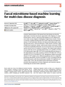 Su, Qi, Liu, Qin, Lau, Raphaela Iris, Zhang, Jingwan, Xu, Zhilu, Yeoh, Yun Kit, Leung, Thomas W.H., Tang, Whitney, Zhang, Lin, Liang, Jessie Q.Y., Yau, Yuk Kam, Zheng, Jiaying, Liu, Chengyu, Zhang, Mengjing, Cheung, Chun Pan, Ching, Jessica Y. L., Tun, Hein M., Yu, Jun, Chan, Francis K.L., and Ng, Siew C. (2022) Faecal microbiome-based machine learning for multi-class disease diagnosis. Nature Communications, 13. 6818.