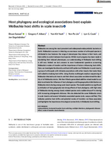Sanaei, Ehsan, Albery, Gregory F., Yeoh, Yun Kit, Lin, Yen‐Po, Cook, Lyn G., and Engelstädter, Jan (2023) Host phylogeny and ecological associations best explain Wolbachia host shifts in scale insects. Molecular Ecology, 32 (9). pp. 2351-2363.