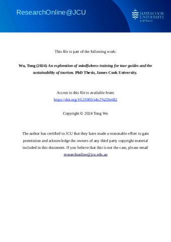 Wu, Tong (2024) An exploration of mindfulness training for tour guides and the sustainability of tourism. PhD thesis, James Cook University.