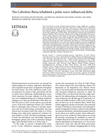 Vaucher, Romain, Michel, Soline, Pas, Damien, Gougeon, Romain, Vizcaïno, Daniel, Lefebvre, Bertrand, and Saleh, Farid (2026) The Cabrières Biota inhabited a polar wave-influenced delta. Lethaia, 59 (2).